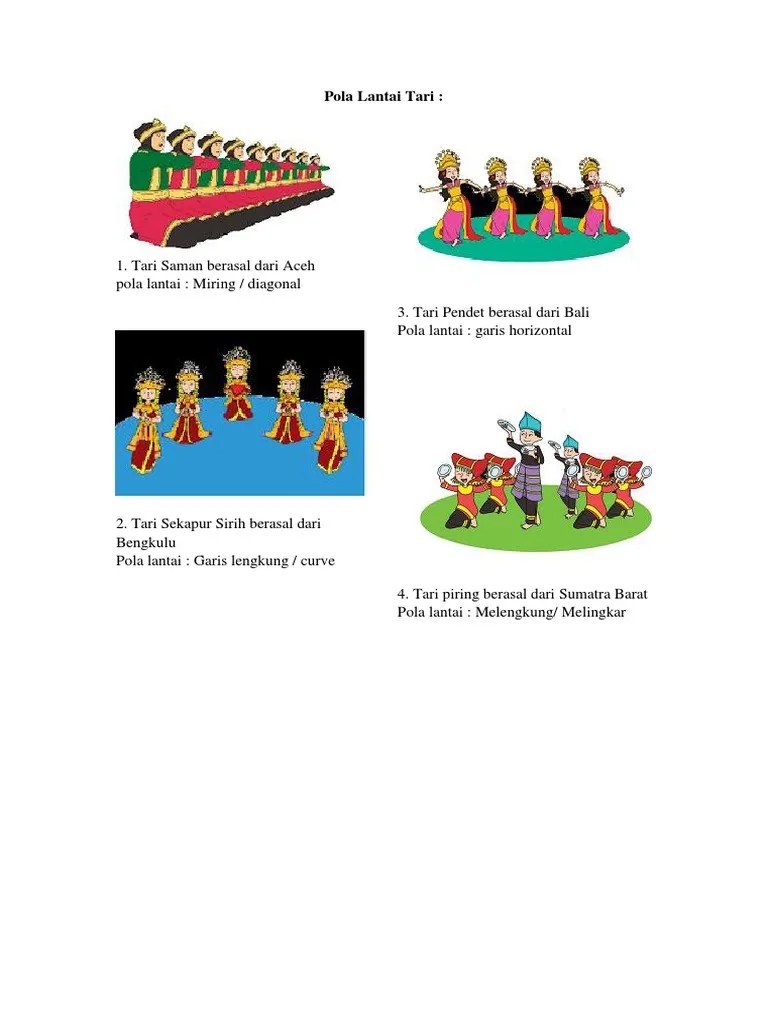 Pola lantai tarian tersebut adalah. Selain menggunakan pola lantai melingkar, tari merak juga memakai pola lantai horizontal . Ada cukup banyak pertanyaan seperti apa pola lantai yang digunakan dalam tarian indang, benar begitu kan? · tari saman dengan menggunakan pola lantai garis . Play this game to review arts.